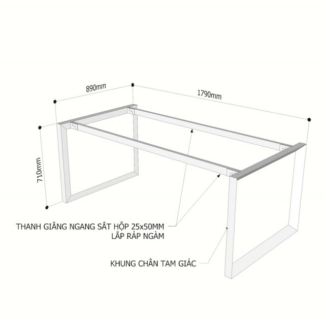 Giới thiệu về sản phẩm Chân sắt tam giác cho bàn 180x90cm hệ Trian II